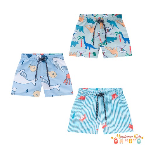 A bermuda em nylon Onda Marinha é confeccionada em poliéster sublimado, possui ajuste do cós em cordão e estampa fofa em toda a peça. É uma peça fundamental para compor os lokinhos de verão dos pequenos e ótima opção para compor o look praia. Os meninos vão adorar!