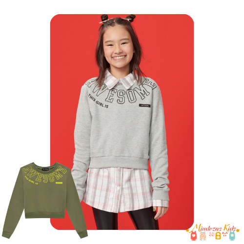 Blusão boxy em moletom sem pelúcia Vic&Vicky