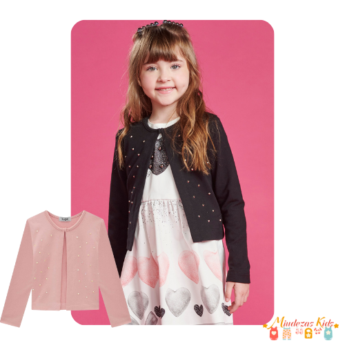 Casaqueto em molecotton Kukiê, com aplicação de strass . Esta é a terceira peça ideal para compor os lookinhos