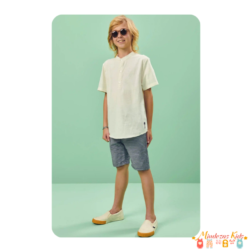 O conjunto de camisa e bermuda em Luc.boo é um look despojado e confortável, do jeitinho que os meninos adoram!