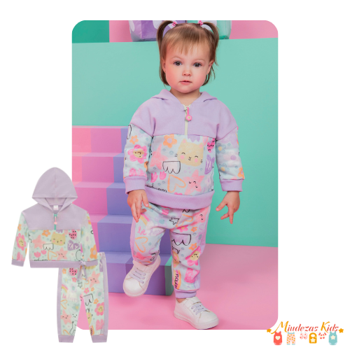 Conjunto de blusão e calça em moletom 3 cabos Kukiê