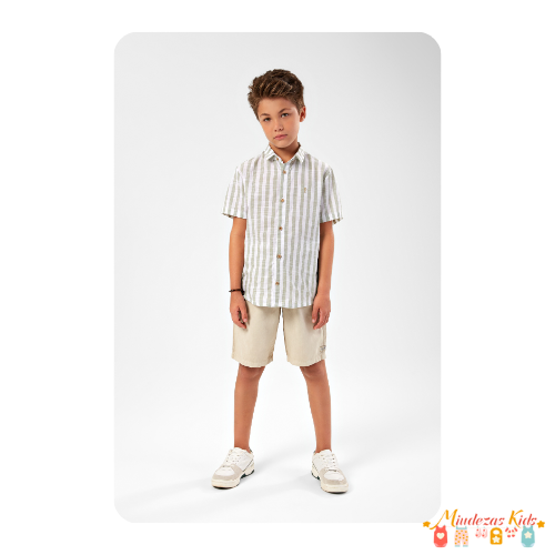 O Conjunto de camisa em linho leve listrado e bermuda em sarja de algodão com tingimento Onda Marinha é perfeito para garantir conforto e muito estilo aos meninos! Sua camisa possui com tecido leve é a opçã ideal para os lookinhos arrumadinhos de verão, possui fechamento por botões, manga curta, detalhe em retilinea na gola e mangas e bainha na barra. Já a bermuda possui elastico na cintura, cadarço e bolso funcionais. E a melhor parte é que tudo é confeccionado com matéria prima de alta qualidade, garantindo o bem estar e o conforto dos pequenos durante o uso! Nos tons de verde claro é uma ótima opção de lookinho para as Festas de Final de Ano, para curtir o Natal e o Ano Novo com muito estilo e conforto.