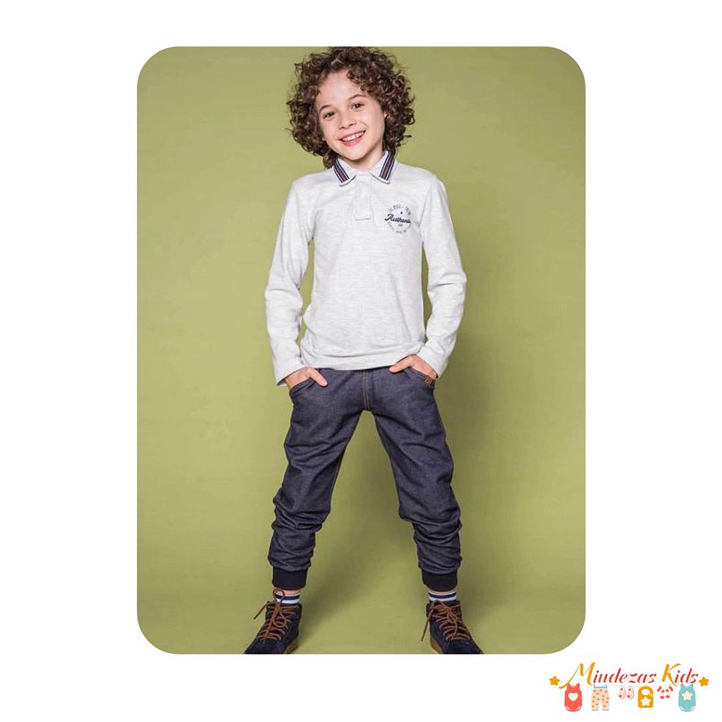 Conjunto de camisa polo em suedine e calça em malha denim Luc.boo
