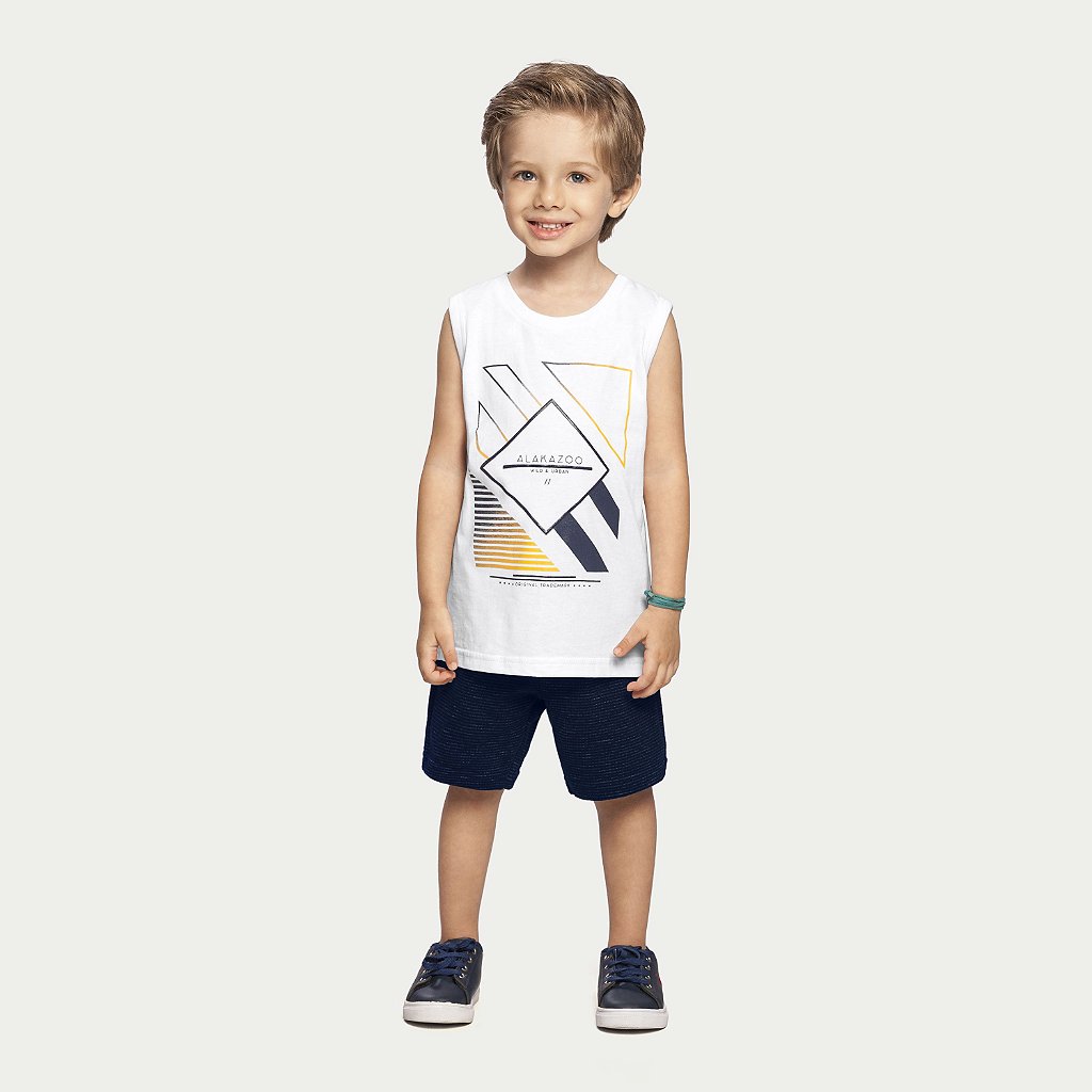 Combinação fresquinha de regata e bermudinha. Possui estampa com puff e gel na regata.