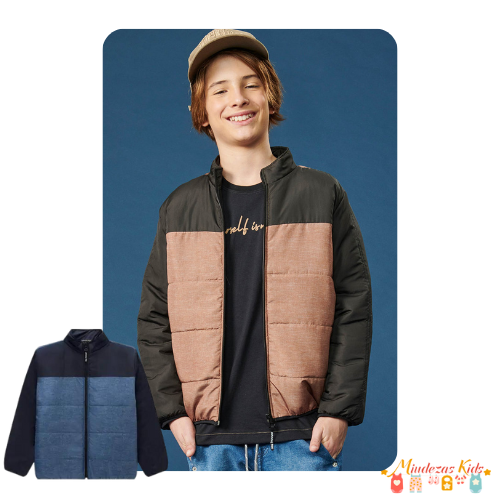 Jaqueta puffer em nylon aspen sublimado com detalhe em nylon aspen liso Johnny Fox