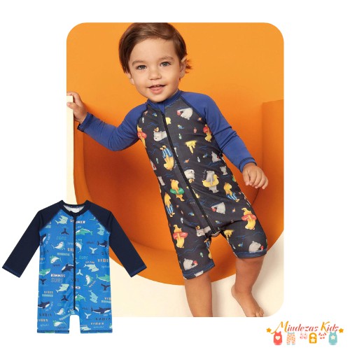 Macacão em malha UV dry com proteção UV 50+ Luc.boo, é o lookinho ideal para proteger as crianças nos dias de sol e praia!