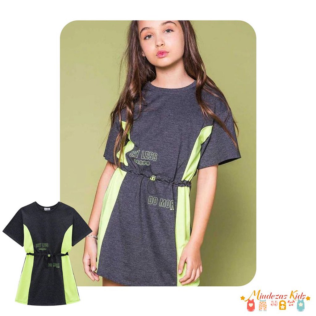 Vestido em meia malha Vic&Vicky com regulador neon na cintura
