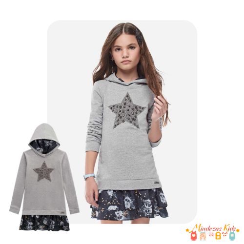O Vestido Star em molecotton e crepe Vic&Vicky é a cara das meninas que adoram uma produção linda, descolada e confortável, aposte!